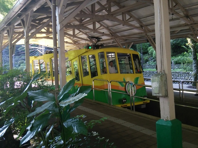 京王線高尾山口駅から少し歩いた清滝駅から、中腹まである高尾山駅を結ぶケーブルカーで所要時間は5分低、運行間隔は通常15分間隔ですが混雑時は7.5分間隔になります。運賃は片道480円と少し高めですが、京王線の往復割引乗車券とケーブルカー・リフトの往復割引乗車券とセットになった切符があるのでをこちらの購入を勧めます。しかしこのケーブルカー、混雑時は乗るまでかなり並びます。1時間程度並ぶこともあるそうですので、時間に余裕をもって使うか、体力に余裕があれば徒歩で登った方が良いです。