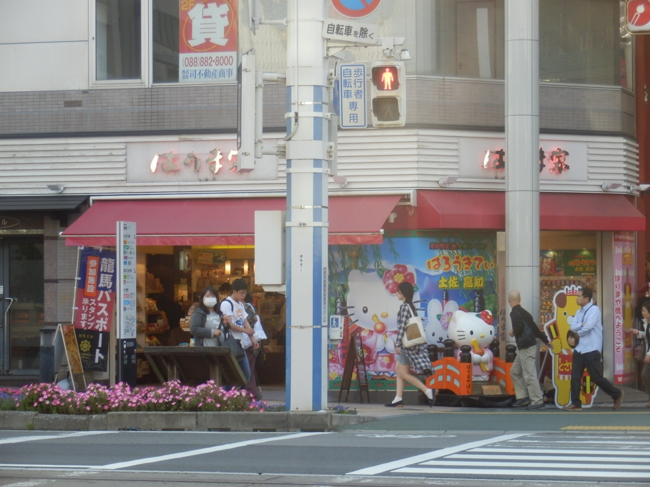 はりま家は、はりまや橋のすぐ近くのアーケード商店街の入口に2店舗が向かい合うお土産屋さんです。京町店の方は向かってアーケード入口の左側です。あまり広くないお店でしたが、ミレービスケットなど有名な高知土産は揃っていました。