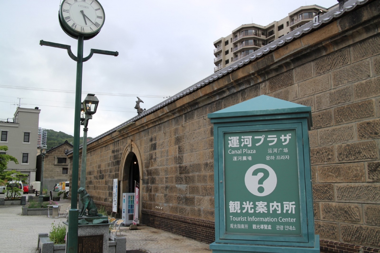 小樽運河交差点の駅側にある観光物産プラザ、お土産物なども売っている