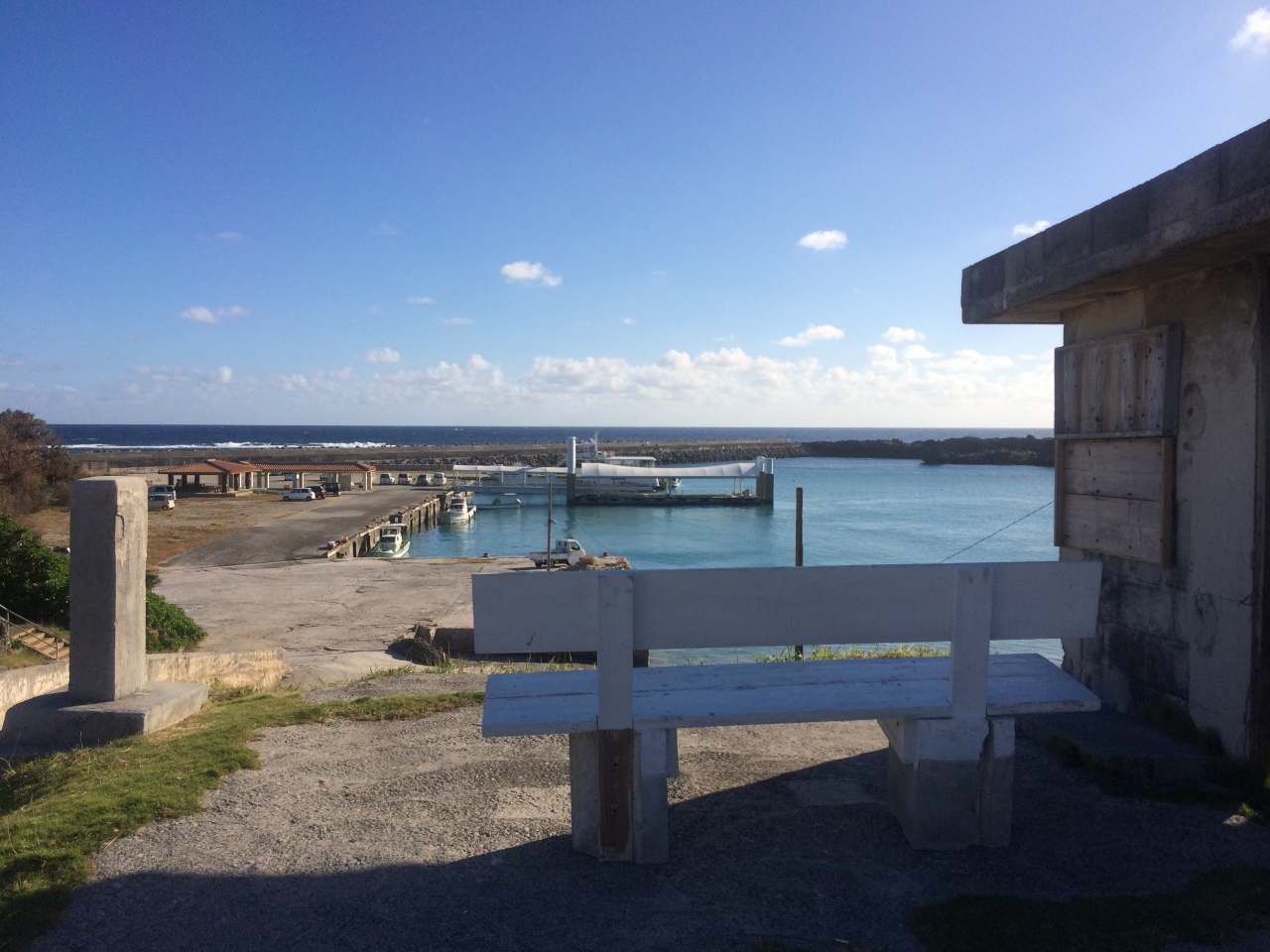 安座真港からフェーリーで20分位でここ久高島の玄関、徳仁港につきます。港から坂を上がったところにあるベンチで港をぼーっと眺めているのが好きです。このあたりはネコがいっぱいいるのでネコ好きにはたまらない場所です。