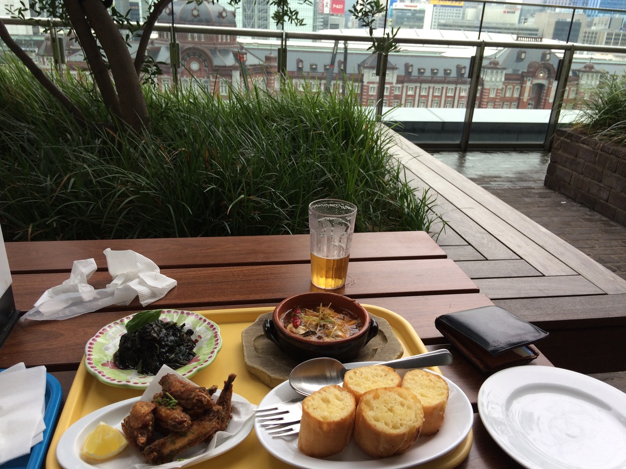人気レストランのリゴレット。平日はまず予約もできない状態の人気店。ですが、土日のテラス席は超穴場スポット。東京駅を目の前に、外でビールを飲むのは最高。ただし、一部外では食べられない料理もあったりするのでしっかり食べたいときは予約して店内で食べましょう!