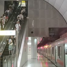 みなとみらい線の終着駅ですが、東横線からそのまま直通するので、東横線の終着駅という印象。本当は横浜高速鉄道という会社の駅。遠くは西武線飯能や東上線の森林公園からの直通電車の終着駅であり始発駅。周辺には、元町商店街、中華街、港の見える丘、外人墓地、山下公園と横浜を代表する観光地があり、休日も結構混雑。高さ13.5メートル、幅12メートルで中華街で最大の門である朝陽門も地上出口の目の前です。ホームの壁面や天井には街並み、コンコースには等身大の人物や道具等がプリントされています。ただし、駅の改札口から中華街の出口までは、結構な距離の地下街を歩く必要があり、待ち合わせの場合は時間に注意。市バスの中華街入口バス停も近くにあります。