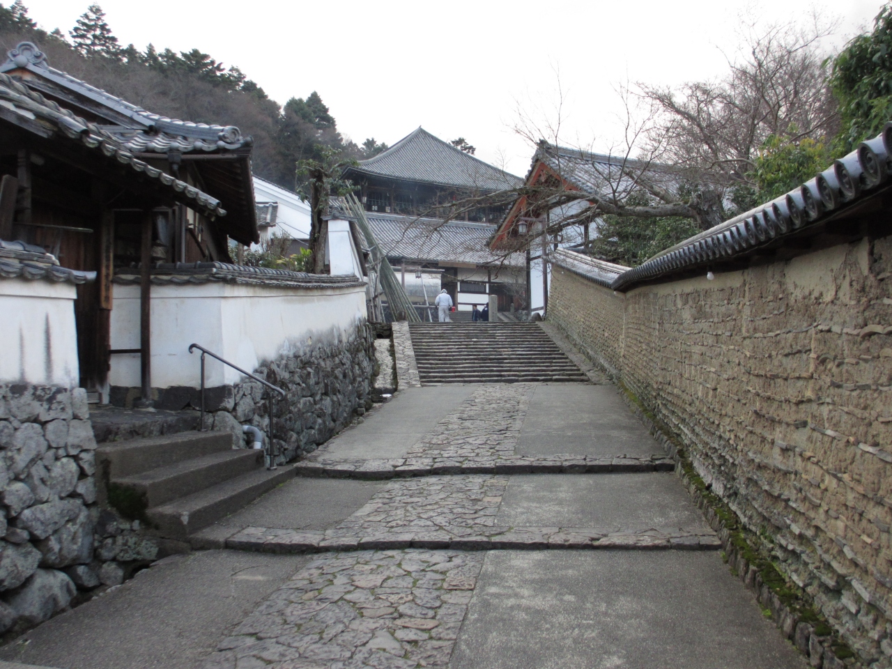 裏参道の道はお寺の塀や正面に二月堂が見えとても趣のある道です。