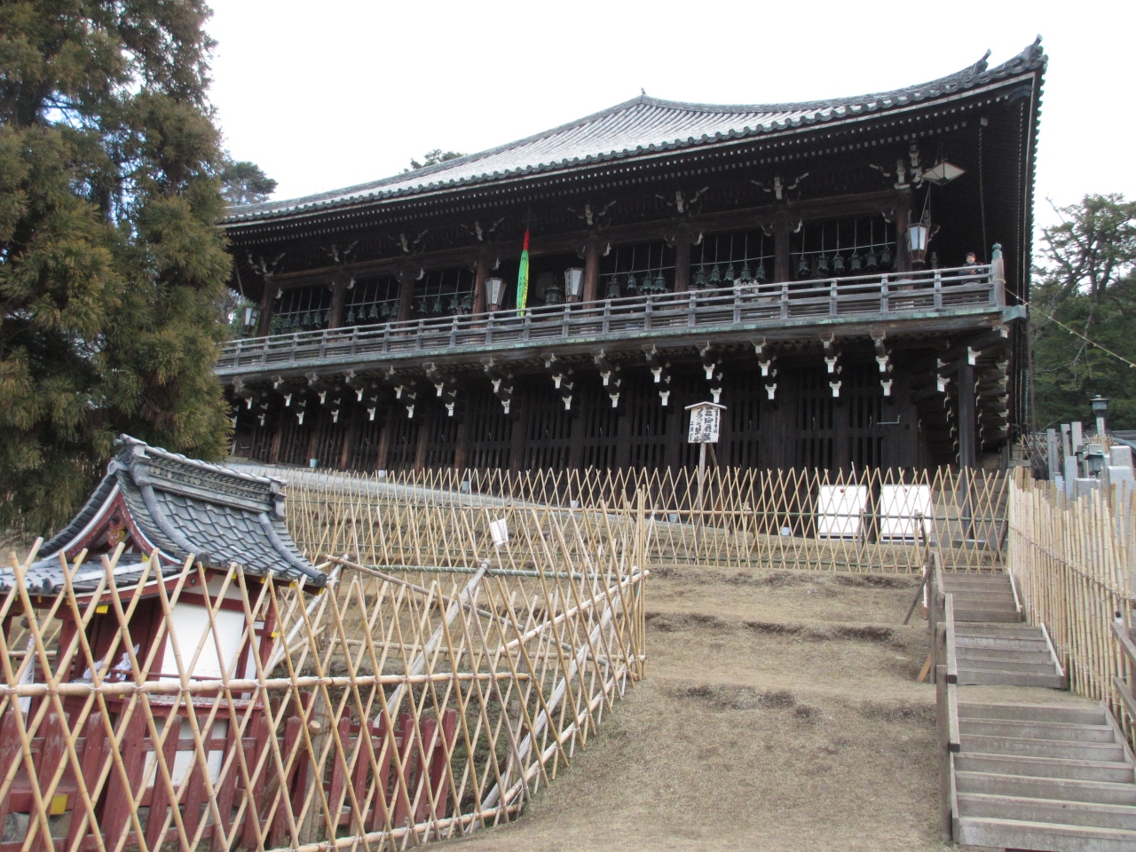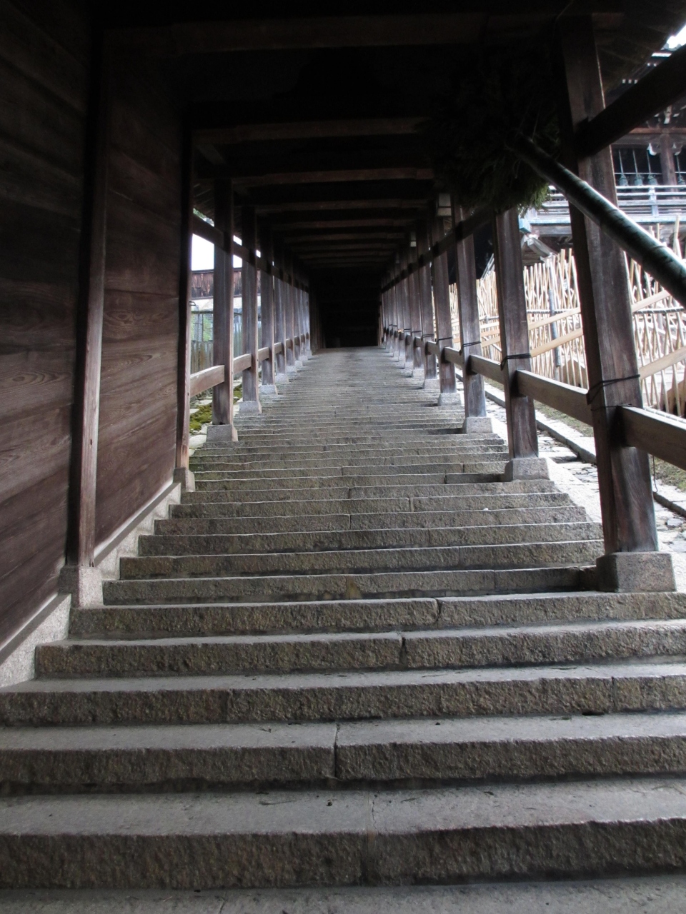 二月堂は西側にある傾斜のある階段を上がり廻廊に出ました。