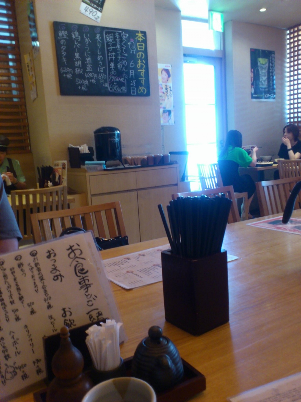 名古屋の新幹線改札の近くのマクドナルドなどがある通りをそのまま進んだ一番奥にあるお店です。新幹線に乗る前にランチを食べました。夜は居酒屋風になるゆですが、ランチはそば(冷たい・暖かい)と各種の丼物をセットになっているのがメインです。冷たい蕎麦と味噌チキンカツのセットを注文。チキンカツはドンブリに入りきれないほどの大きさでボーリューム満点です。残念ながら完食できませんでした。