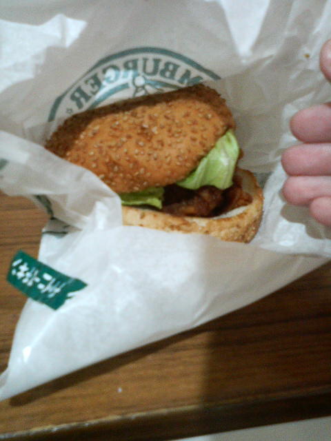 この日は名物メニューの「チャイニーズチキンバーガー(350円)」を注文したのですが、大きめの鶏から揚げが3,4個挟まった豪快な一品で、濃い目の味付けとパンや野菜の相性もよく、満足の一品でした。