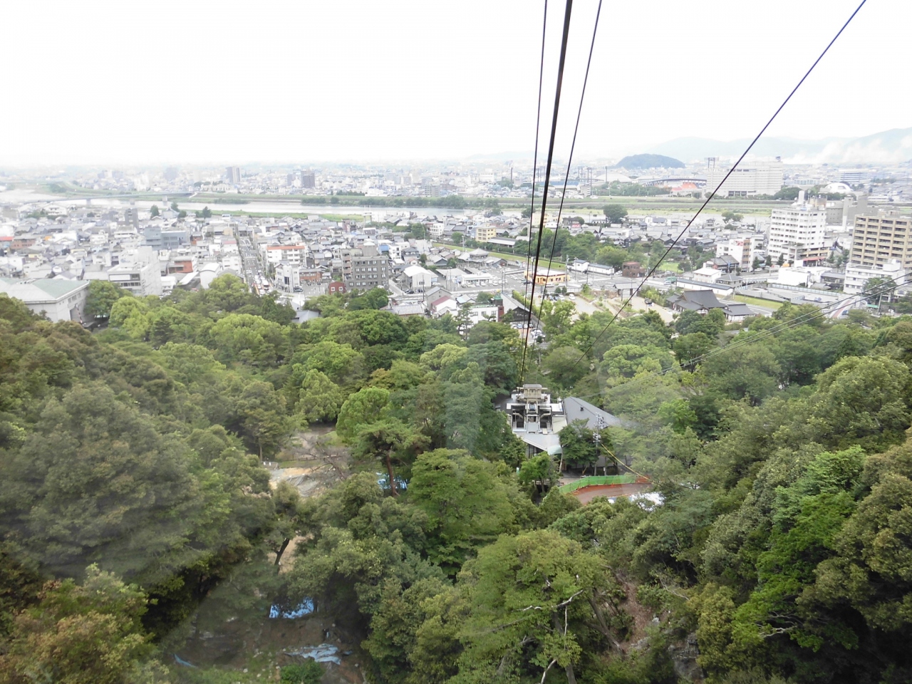 岐阜公園までバスかタクシーで行くと、ロープウエイ乗り場はすぐです。山麓駅と山頂駅を結ぶ3分間の空中散歩ですが、眺めはなかなかのものでもう少し乗っていたい気分になります。