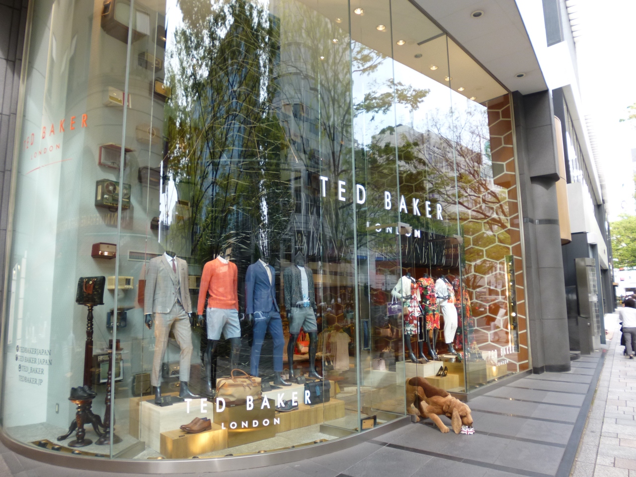 表参道の交差点から原宿方面に少し歩くと、右手に特大のショーウィンドウが見えます。ガラス越しに洋服だったり小物だったりがたくさん並んでいますが、こちらはロンドンのファッションブランド「Ted Baker」のお店です。