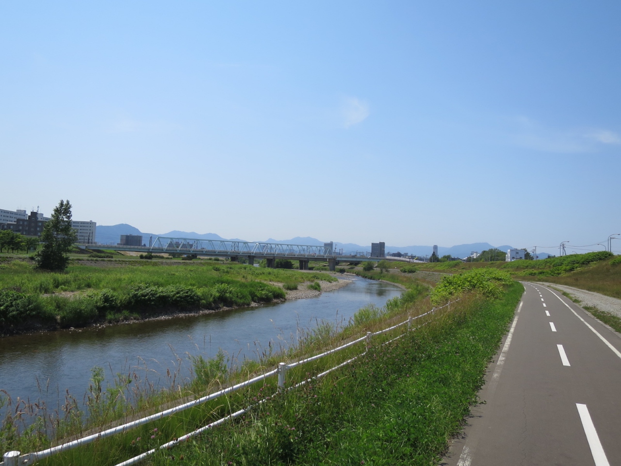 中心部と違って、豊平川下流域では川沿いの生える木々のため、川面はほとんど見えません。