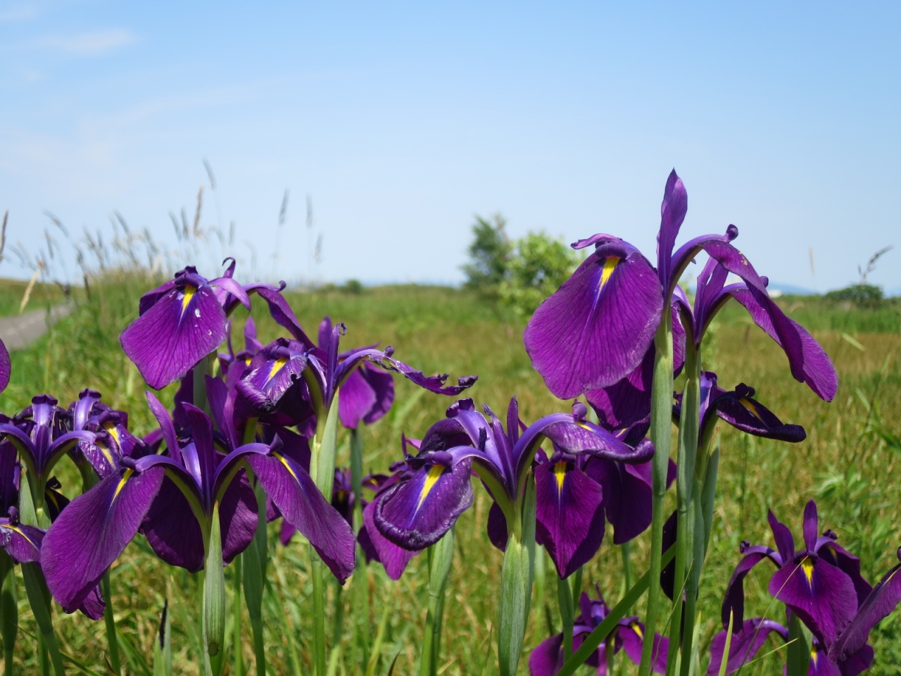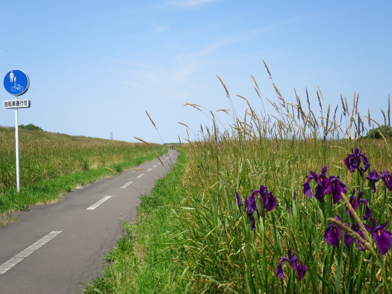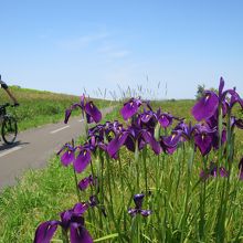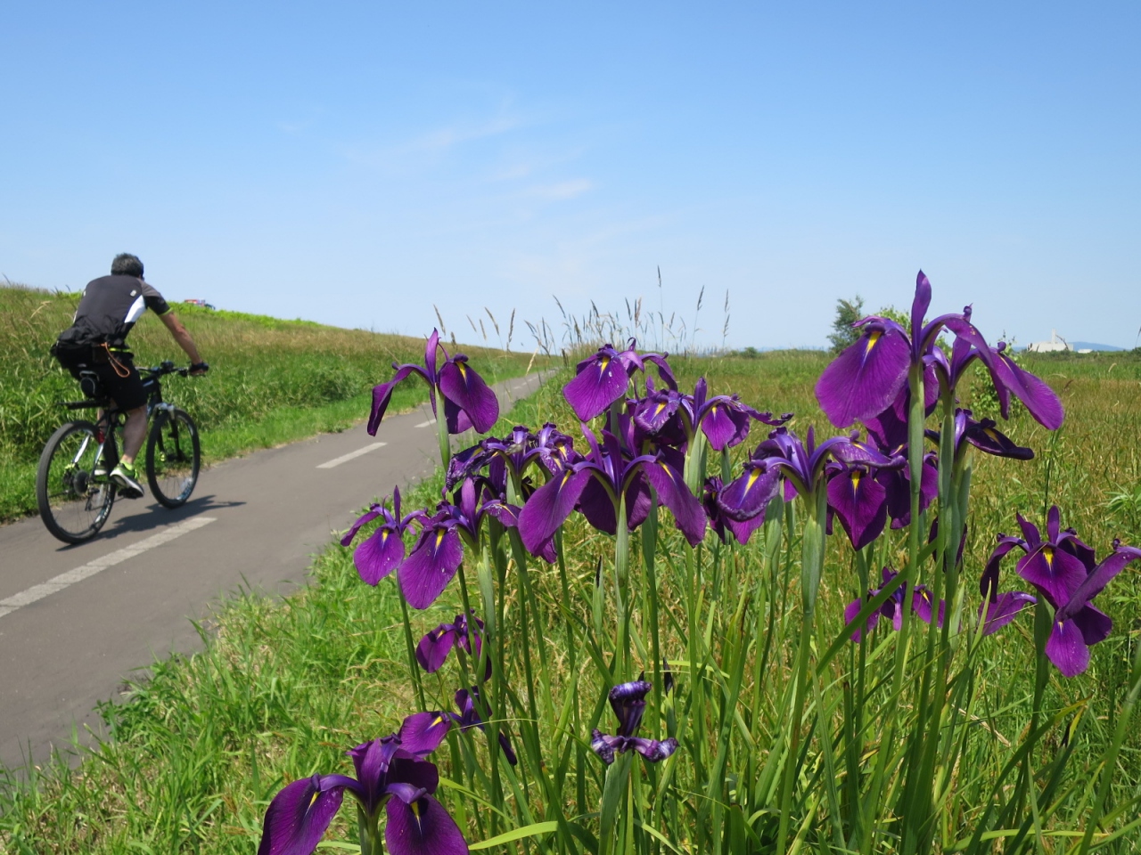 豊平川下流、石狩川合流付近には自転車道の横にノハナショウブが咲いています。