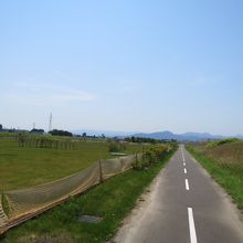 ただ、近くの土手に上がると、広い畑作地の向こうに手稲山、藻岩山、恵庭岳、イチャンコッペ山など道央の山並み、振り返るとピンネシリなどの樺戸の山並みなどが見えます。