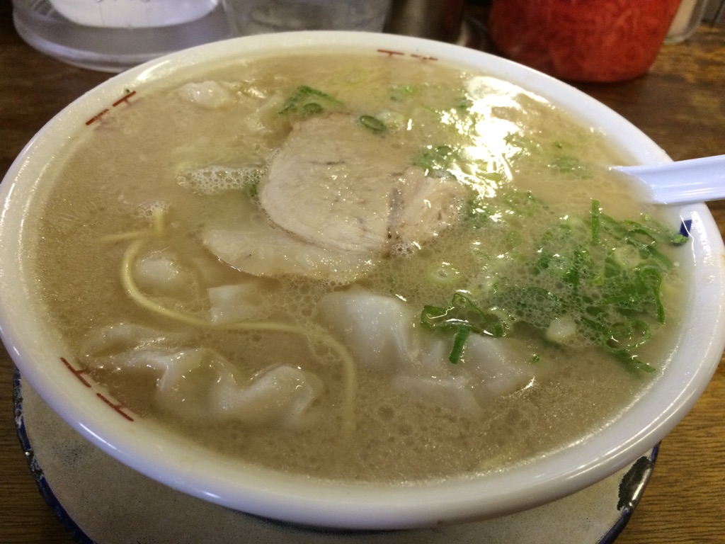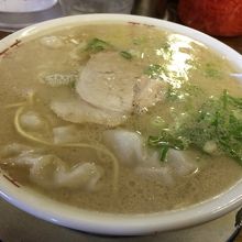 スープは見た目や臭いのわりにはあっさりしていて、麺の量もちょうどよく男性はみんな替え玉していました。