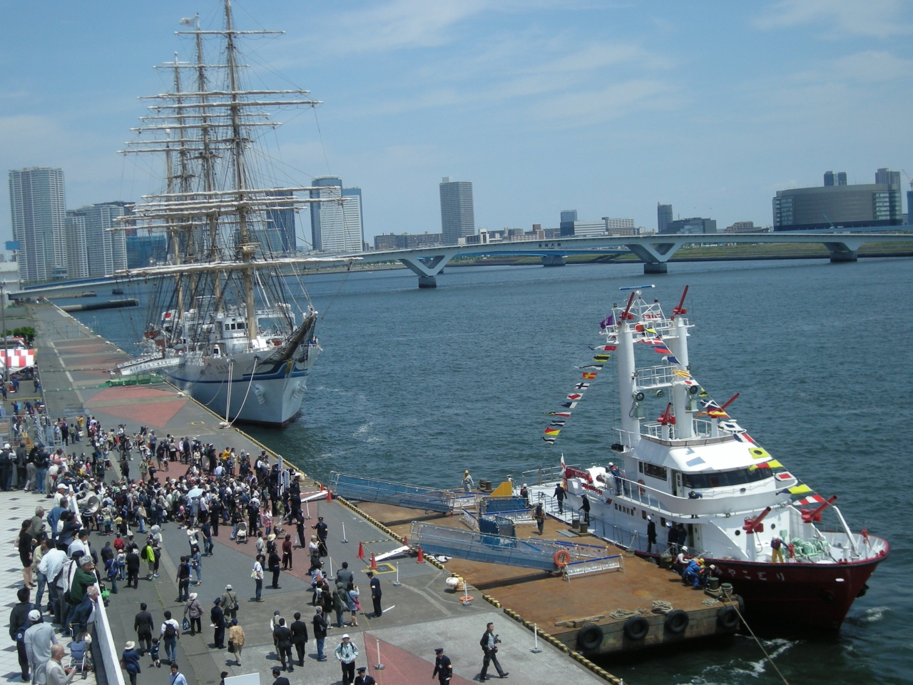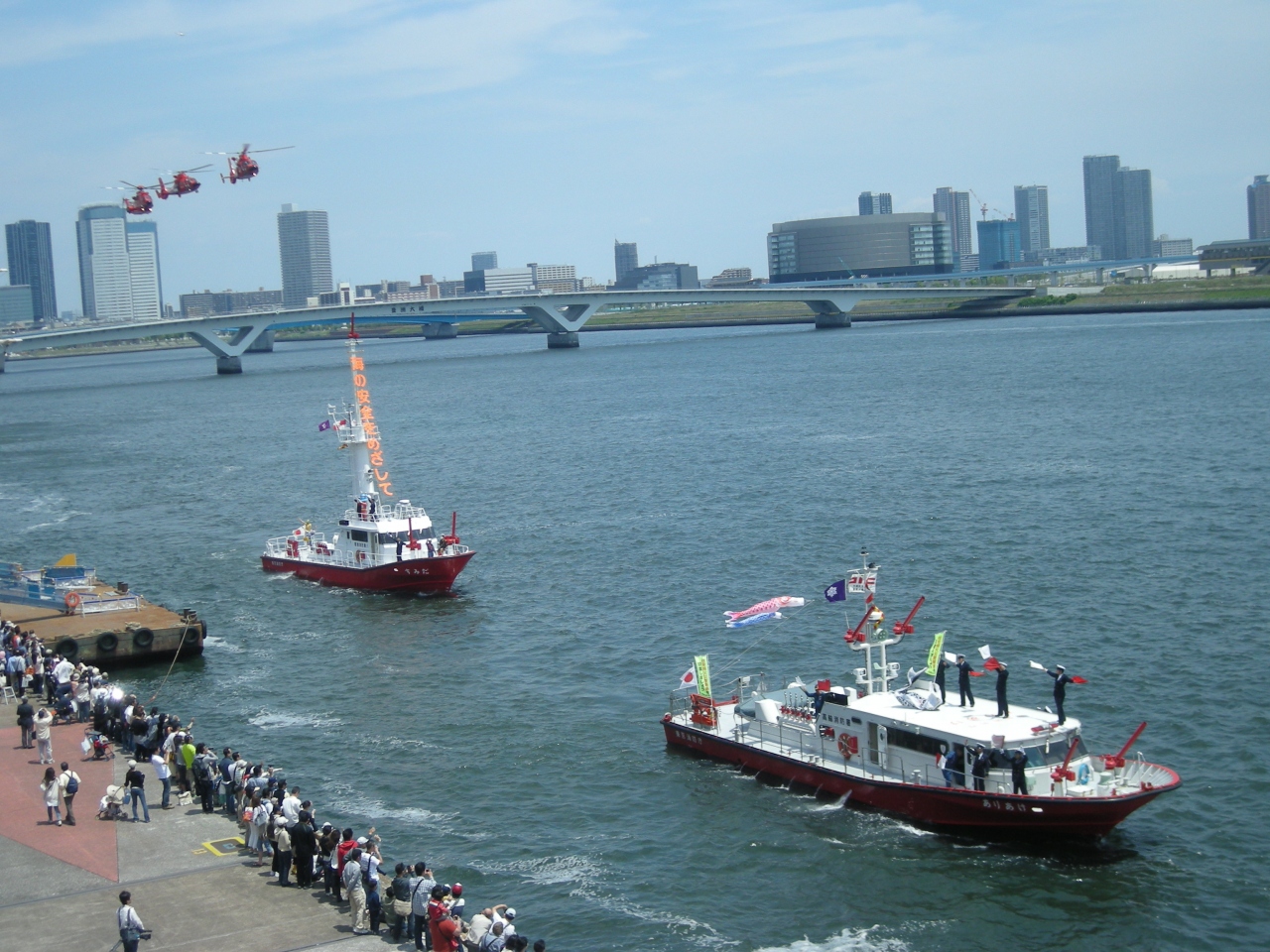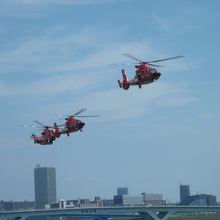 晴海旅客ターミナル周辺で行われる東京消防庁によるイベントです。当日は護衛艦や練習船、海洋調査船等の一般公開の他、消防艇による一斉放水や消防ヘリコプターによる水難救助演習なども行われます。多くの人が見学にやってきて込み合いますが、消防庁の仕事や護衛艦などを身近に感じるイベントになっています。5月開催のため年によってはとても暑くなります。暑さ対策も必要です。イベントは2日間行われます。