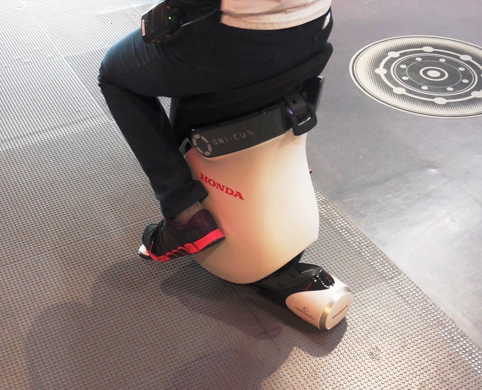 目についたのは、常設展にあったロボットコーナー、人間そっくりなアンドロイドは、はっきり言って、キモい。その脇を職員が、自動走行する一輪車のような乗り物にのり通り過ぎる。よく見るとハンドルの類はない。体を傾かせると方向転換する。モータで自走、音もなくシュルシュルと座ったまま移動する職員はシュールだった。