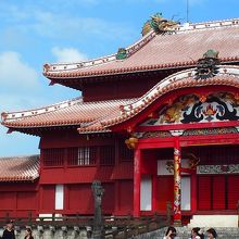 今の建物は沖縄戦で消失したものを再建したものですが、まだ新しく非常に色鮮やかで絢爛豪華な建物となっております。