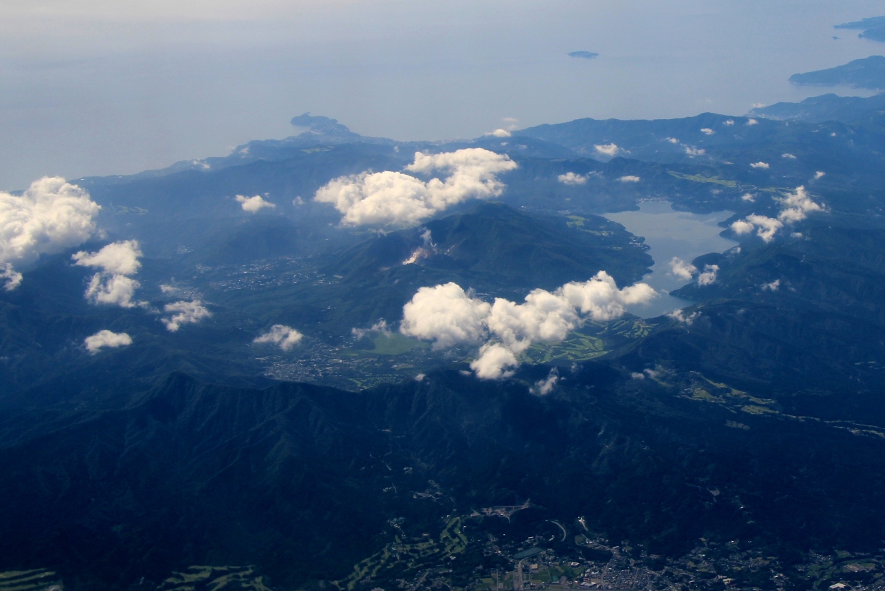 羽田空港から山口宇部空港に向かう際、機上から芦ノ湖が鮮明に見えました。今年5月に箱根に行き湖畔から芦ノ湖を見ましたが、機上からだとその大きさ、形などがはっきりとわかりました。外輪山の中にある湖だと良く分かります。