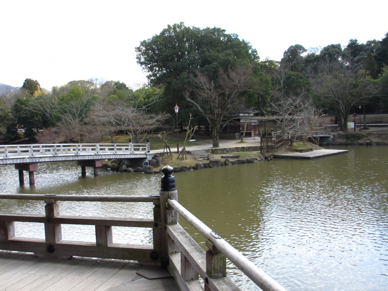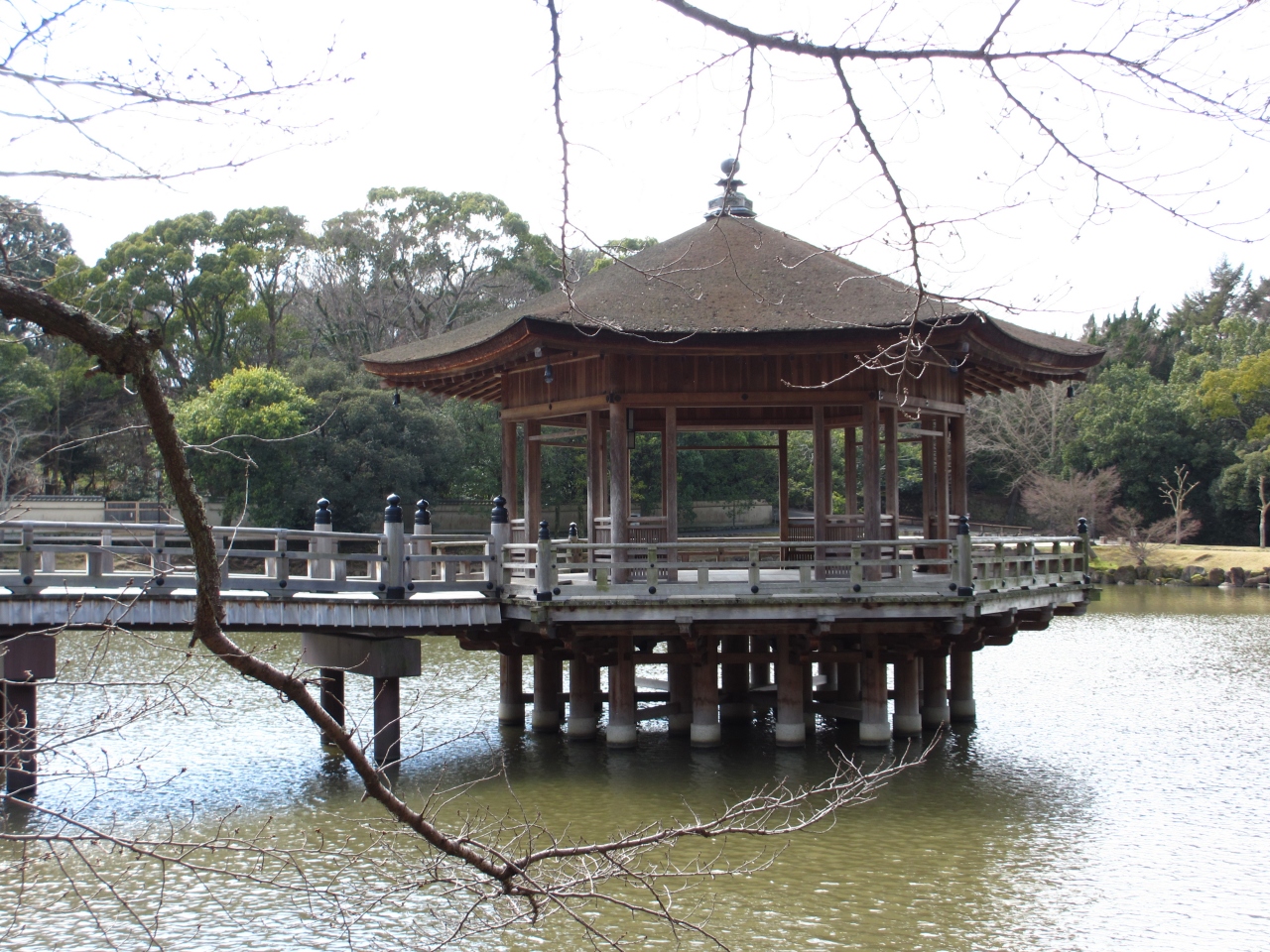 池の側には桜の木がたくさんあったので、四月に浮見堂と桜の写真を撮ると