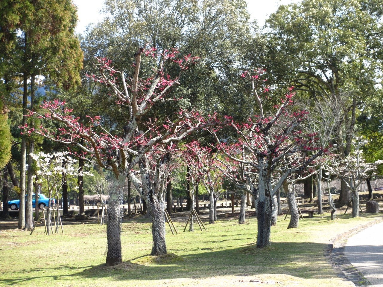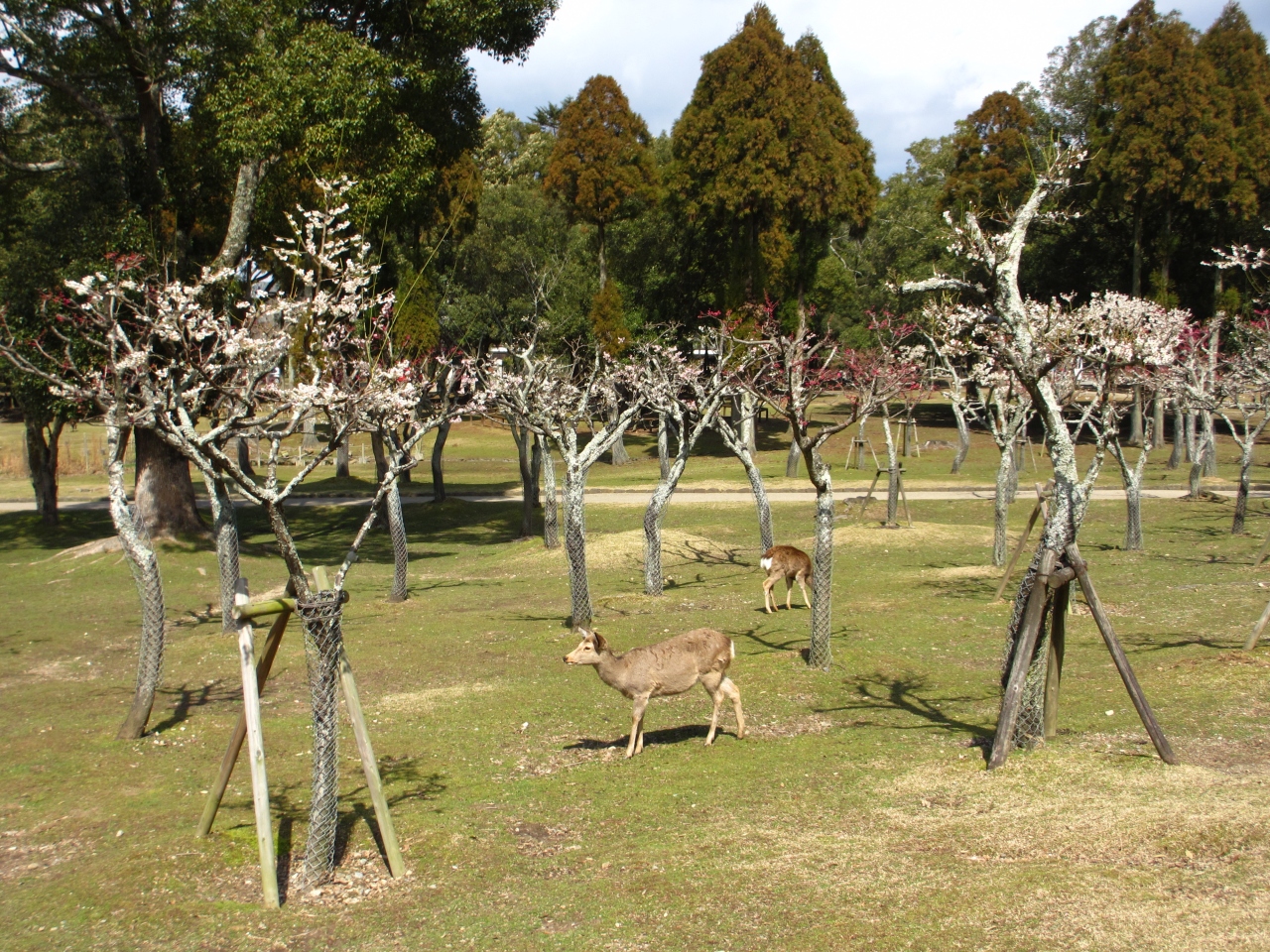 春日大社の参道から奈良公園の梅林に行きました。