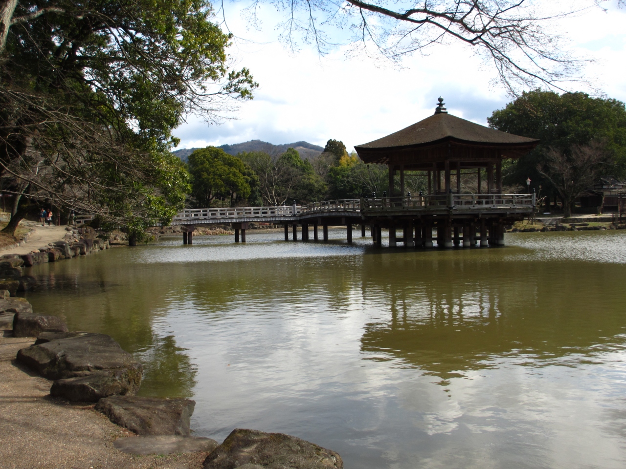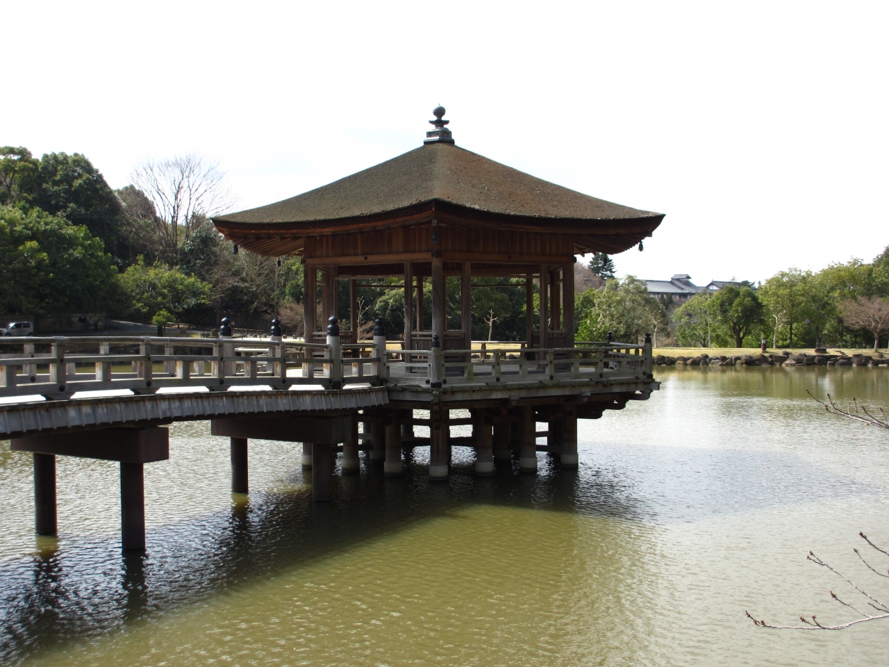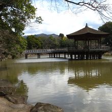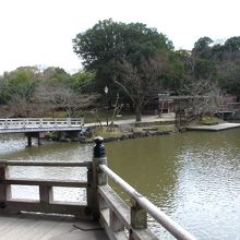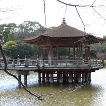 坂道を降りると浮見堂が見えます。