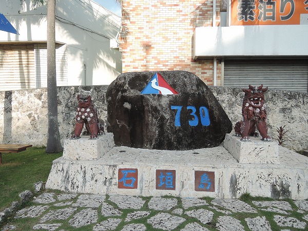 沖縄統治時代は右側通行でしたが日本返還後は左側通行になった記念碑です