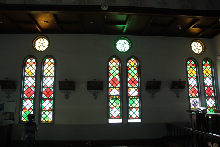 ステンドグラスからやさしい光が差し込んでいます。