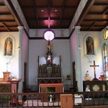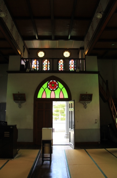 教会中は、畳敷きで、中央が板敷きになっている非常に珍しいスタイルです。