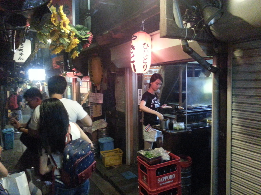 一歩足を踏み入れるとそこは昭和の良き時代。小さなお店が何軒も密集してて、焼き鳥の煙がモクモクと。狭い店内のカウンターには何処もいっぱいで活気があふれてます。外国人に紹介されているようで結構な外国人が飲みに来てました。懐かしい通りです。