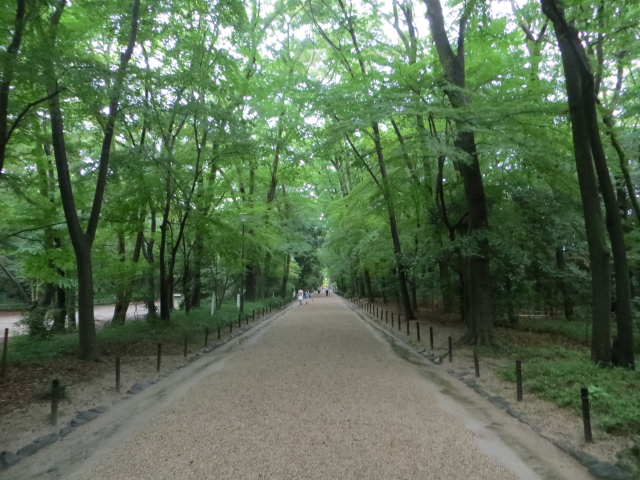 下鴨神社に行く途中、その参道の両側に続くのが糺の森。ガイドブックなどで多く紹介sれているのでどんなところかとても期待していました。森の中でバードウオッチングやピクニックなどが出来るかと思っていたら柵に囲まれていて入れそうもない。これだったら京都御苑のほうがmuch better。