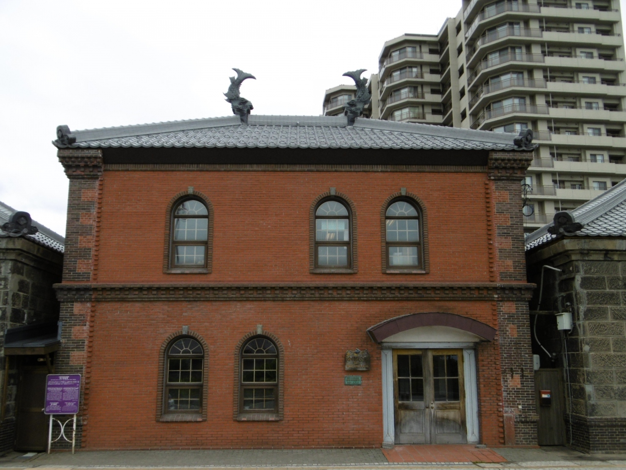 屋根に鯱(しゃちほこ)がのった煉瓦造の建物の北側が『小樽市博物館』、南側が『小樽市 観光物産プラザ(運河プラザ)』です。