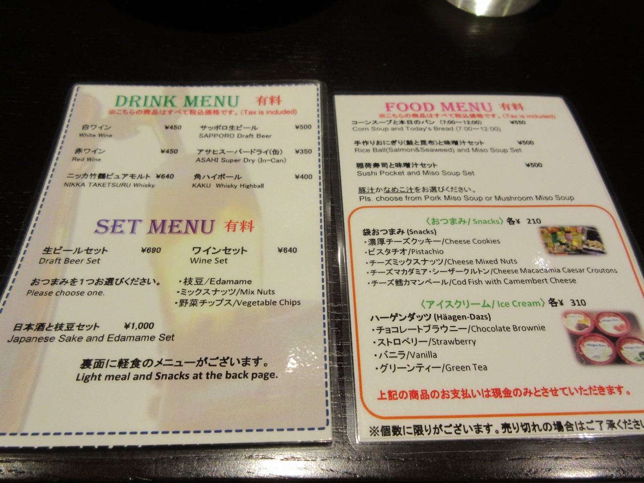 - ソフトドリンク、ホットは無料 有料メニュあり