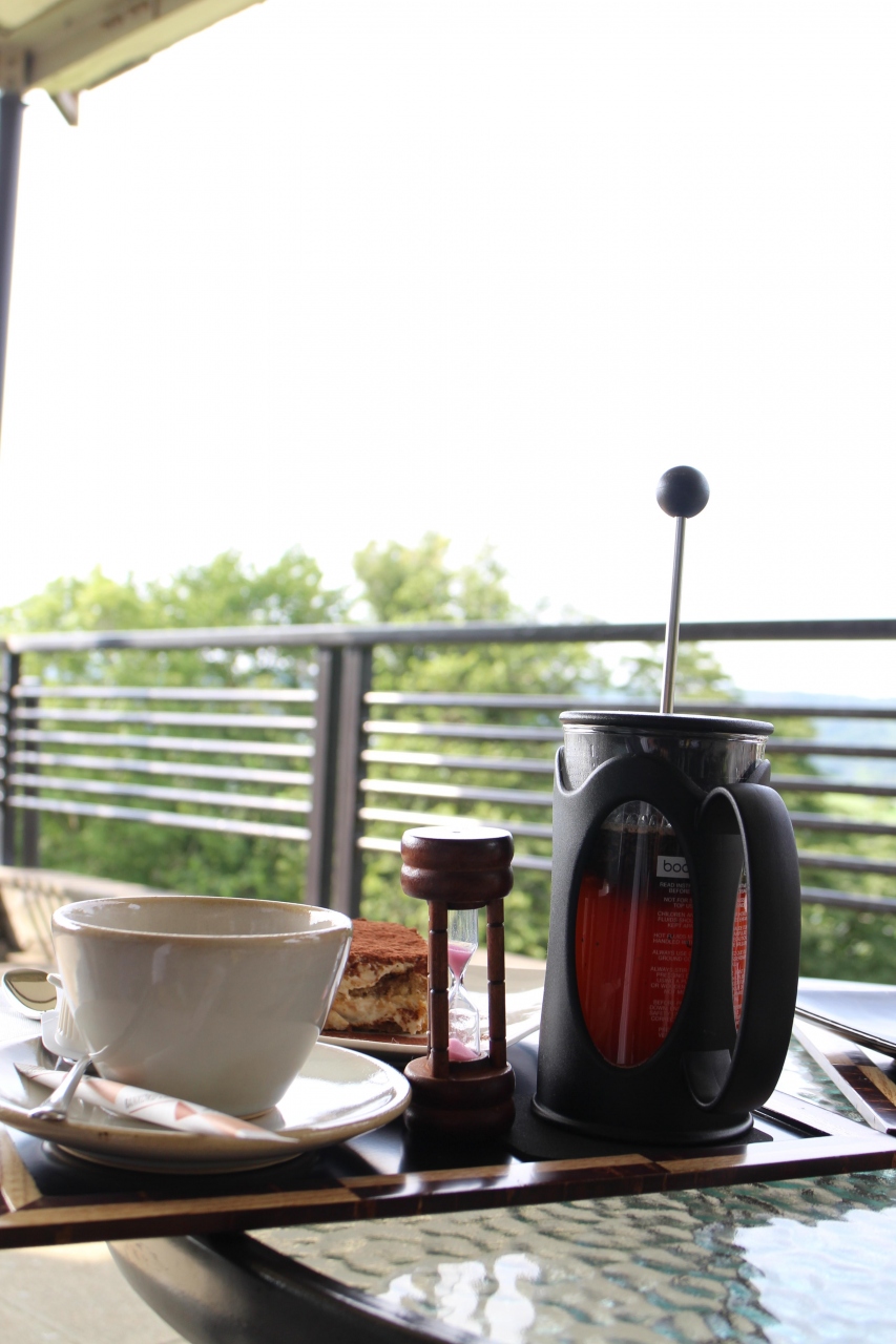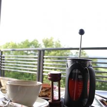 能舞台の近くに景色が見えるカフェもあってゆったり出来ます。