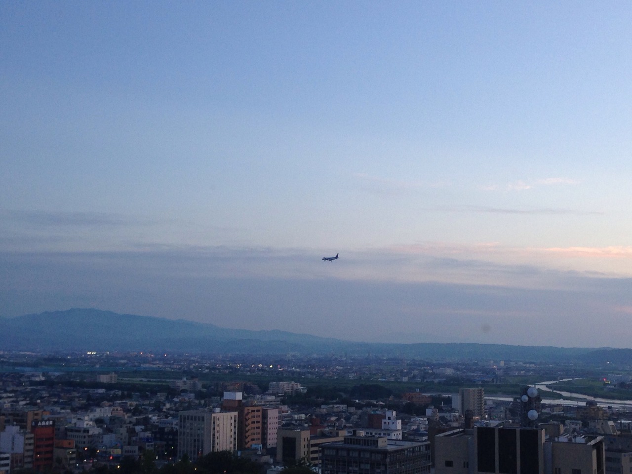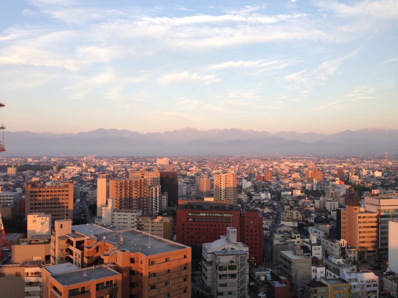 地上から見たらたいして高く感じず期待しなかったのですが 昇ってみたら街、空港、山、能登半島…ナイスビューです! 7月とゆうのにうっすらと雪の残る立山連峰が とても綺麗。沈む夕陽とのコラボも最高でした。