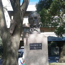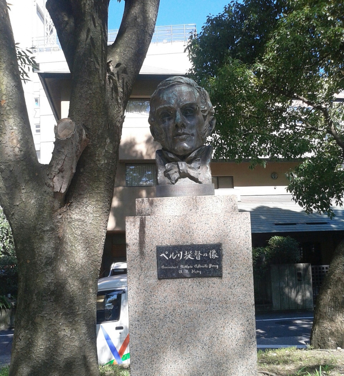 芝公園(増上寺の三解脱門前)内にある銅像です。銅像には「ペルリ提督」と刻まれていたので、この人は誰?と思い、調べてみると、江戸時代に黒船で来港した「ペリー提督」の銅像でした。日本史の教科書で見たペリー提督とは全然違うので、分かりませんでした。