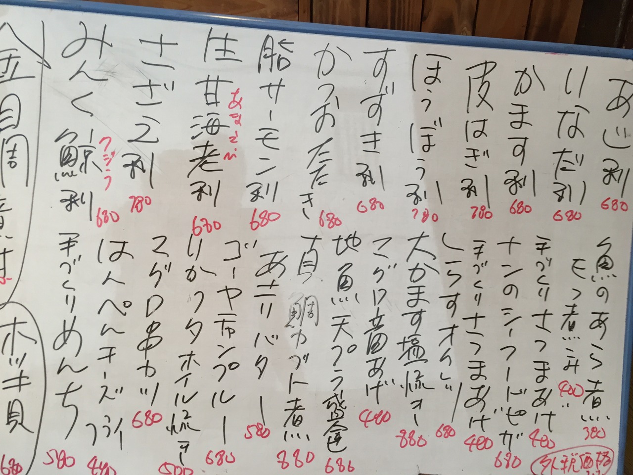 小田原駅の東口を出て、すぐ右側のお城通りを少し行き、すぐに左に曲がった細い路地に面しています。地元の早川漁港にあがった新鮮な魚を使った料理は美味しく、地元でも人気の店だそうです。お店の雰囲気も店員さんの対応も、確かに素晴らしいです。今回は宴会だったので、別棟に通されました。従って、落ち着いて飲めました。