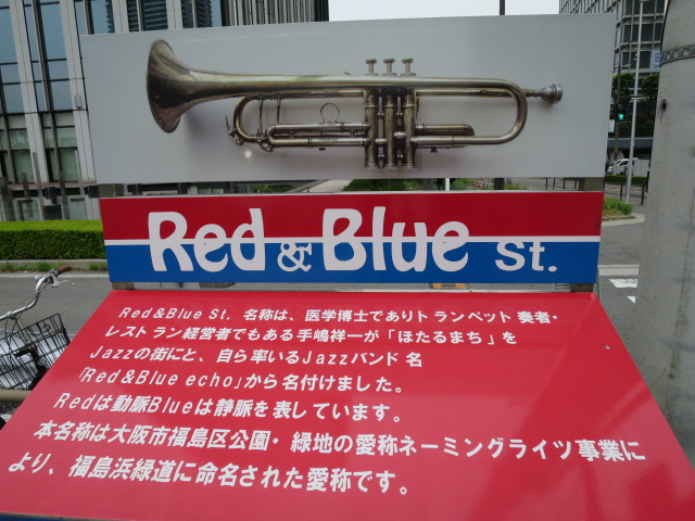 福島区と関西を中心に活動するジャズ・トランペッター手嶋氏間によるネーミングライツ契約でできた遊歩道。遊歩道は綺麗に整備され、カンバンにはトランペットが載っている案内などがある。