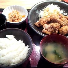 ランチは全て税込千円。唐揚げとしょうが焼きと一夜干しから選択。