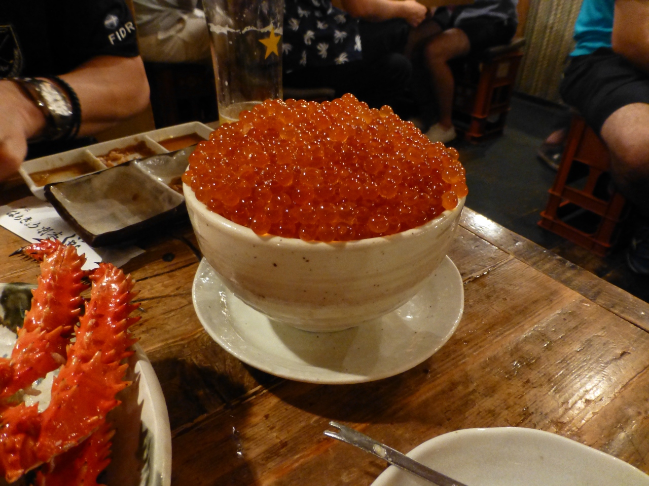 おにいさんたちの威勢のいい掛け声で、いくらを盛ってくれます。