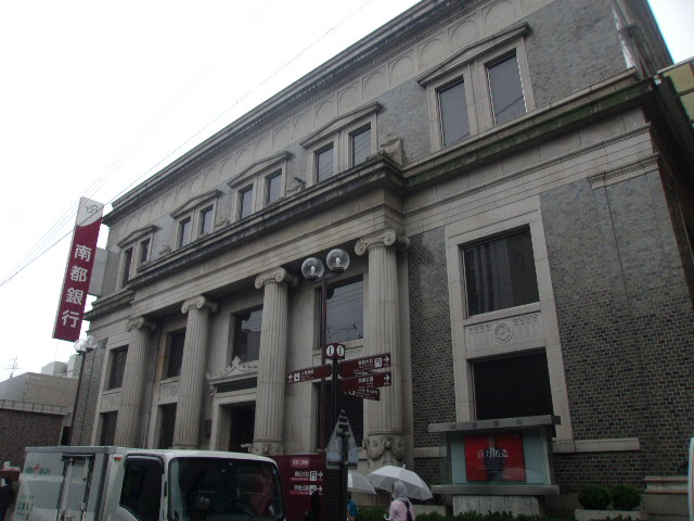 雨降りの中、アーケード街を何気なく歩いていて突如見つけたのがこちらの銀行建築で、北海道民的には何だか小樽の町中にある銀行を思い出してしまいました。イオニア様式の列柱が印象的な外観で、登録有形文化財にもなっている素敵な銀行建築でした。