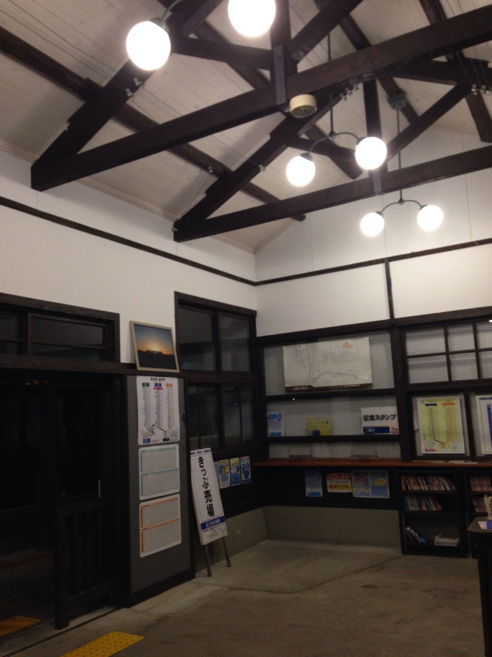木造のステキな駅は映画に出てきそうな雰囲気でした。待合室には写真や絵 落書き帳もあり灯りも穏やかで 電車を待つのも苦になりませんでした。