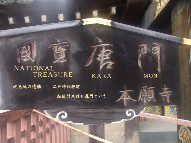 西本願寺境内の南側、より京都駅に近い側にあるのがこの美しい門で、国宝にも指定されていることで多くの観光客を魅了している門です。殆どの観光客は境内側からアクセスされるようですが、実はこの門の南側、つまり境内に入らない側からも眺めることができ、それぞれの美しさがこの門にはありますので、両側から眺めることをお勧め致します。ただ、外部からの通路が長いので、ちょっと面倒ではあります。