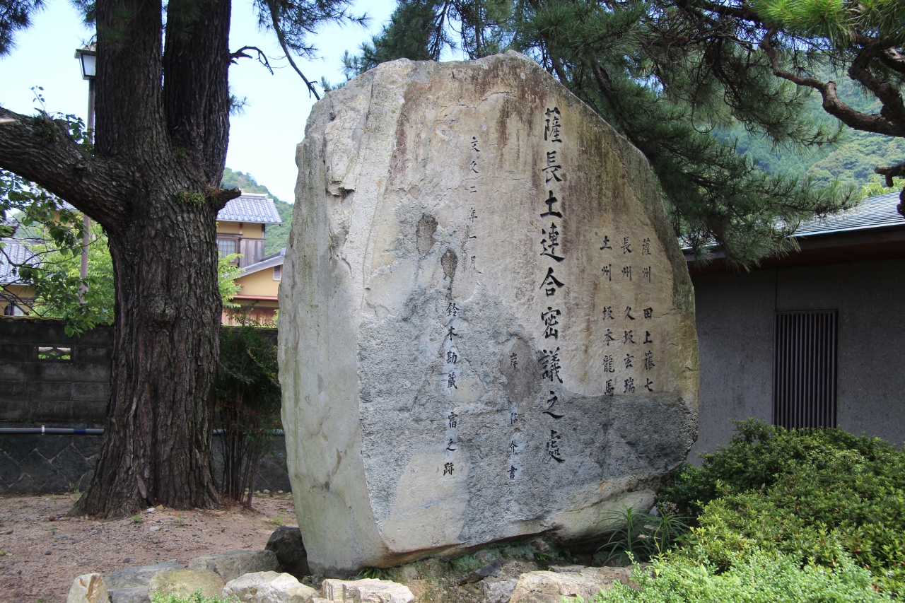 薩長土連合密議之所碑は、萩の松陰神社境内の入口のすぐ左側にあります。