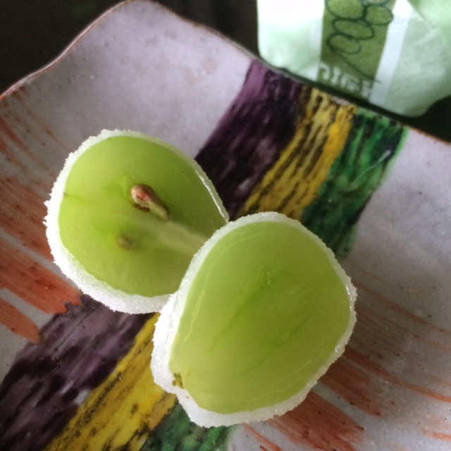 岡山県産マスカットオブアレキサンドリアを丸ごと求肥で包んだひとつぶマスカットを買って来ました。1個260円と高額ですが、毎年夏本番を迎える前の時期に販売されます。似たお菓子が源吉兆庵でも販売されていますが、私は共楽堂の方が美味しいと思います。