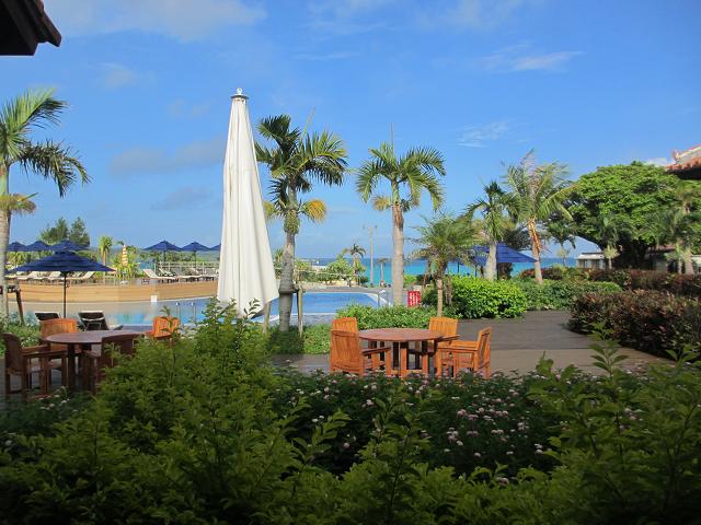 ビッフェでの朝食提供でテラス席からはプールや海を眺めながらリゾート気分を楽しみながら食事がとれました。種類も多く満足です。
