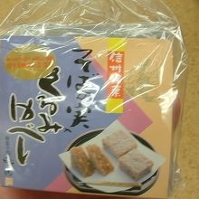 そんな中から、“そばの実くるみゆべし”という御菓子をお土産に買いました。蕎麦の実と胡桃を練りこんだ一口サイズのゆべしで、香ばしい胡桃の歯ごたえとゆべしのもっちりとした食感がよく、上品な甘さで日本茶やコーヒーともよく合いました。8個入って確か540円だったと記憶しています。嵩張らないし、お土産として値段も手ごろでした。