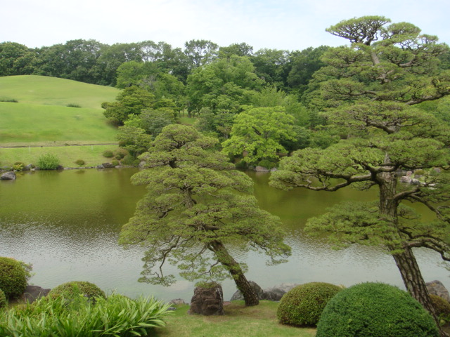 万博記念公園の約1/4を占める広大な日本庭園です。万博開催にあわせて、世界から訪れた方々に日本の造園技術を披露することや、自然や憩いの場を提供することで造られました。園内は上代、中世、近世の3つの時代を代表する様式を取り入れ、池や竹林、茶室、さらに小滝まであります。特にゲート前にある休憩所は正面に心字池(上からいると心の文字になっている)や黒松、後ろには築山があり、その景色を見ていると時間を忘れてしまいます。