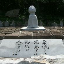 慰霊塔には“奉公さん”という人形のオブジェが立っていて、周辺には市町村の名前が彫られた石が配置されています。