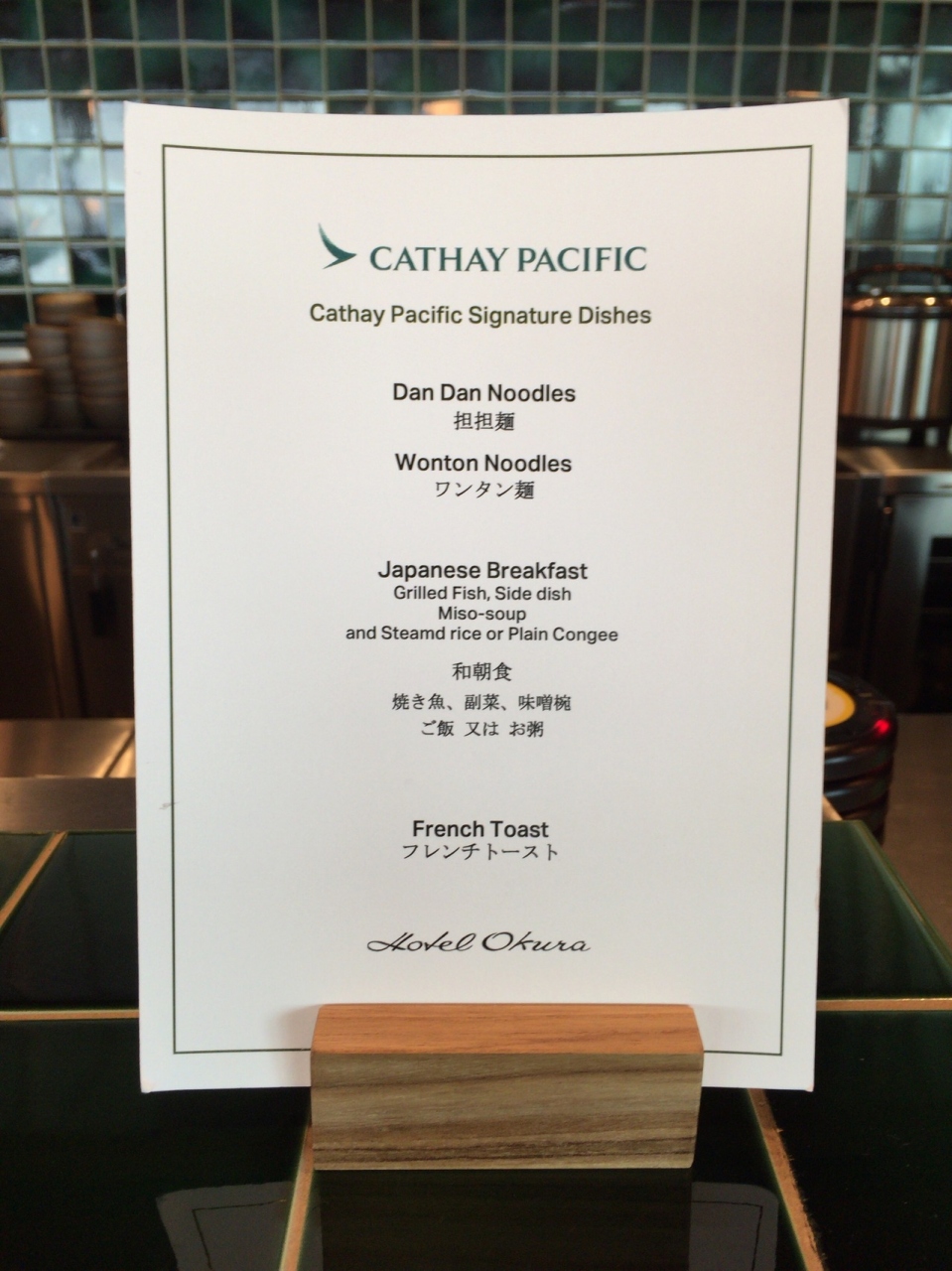 個人的に一番気になっていた供食サービスですが、羽田ではホテルオークラが担当。香港のラウンジと同様にヌードルバーもあり、またビュッフェも担当者が取り分けてくれるので、他のエアラインのラウンジのように「取り荒らされてる」ような事もなく快適。