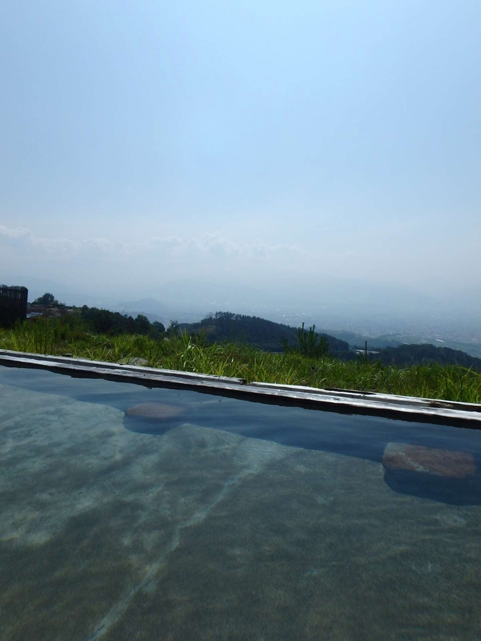洗い場と内湯は、どこか田舎の共同浴場のような雰囲気が漂って、なつかしい感じ。そしてメインの露天風呂から望む甲府盆地は、ただもう「絶景!!」の一言!陽ざしがきつい時は、置いてある菅笠をかぶって入浴できるのもユニークな演出です。