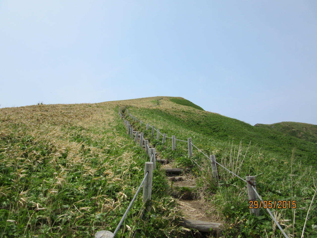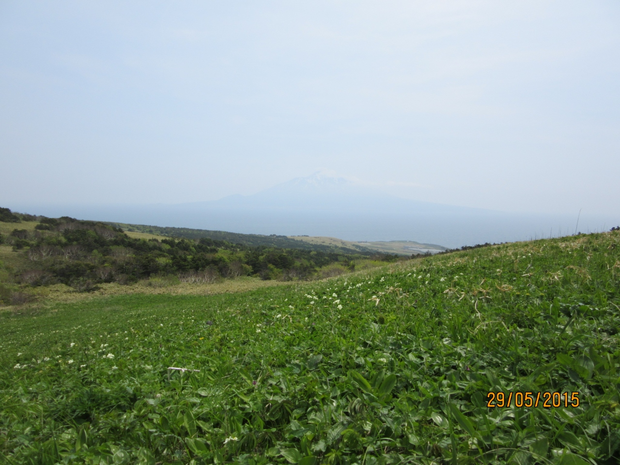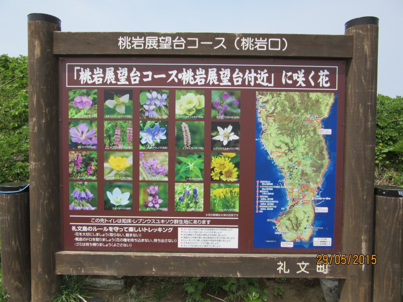 桃岩展望台⇒元地灯台 2.5キロ 約1時間=急な階段がありきついが、ここからの礼文島の美しい花々、そして対岸に見える美しい【利尻富士】の姿は心に残る絶景。