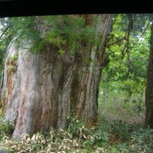 車窓からは幹しか見えないので、どのくらいの高さか想像できませんが、樹齢数百年という太さと堂々とした貫禄だけは確認できました。